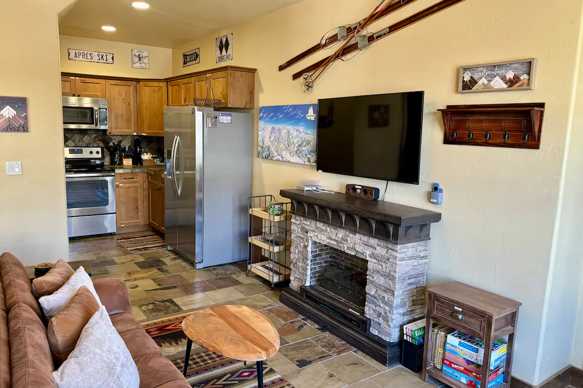 Step outside to the covered deck and enjoy fresh mountain air year-round, complete with a gas grill and outdoor seating — perfect for après-ski evenings and morning coffee.